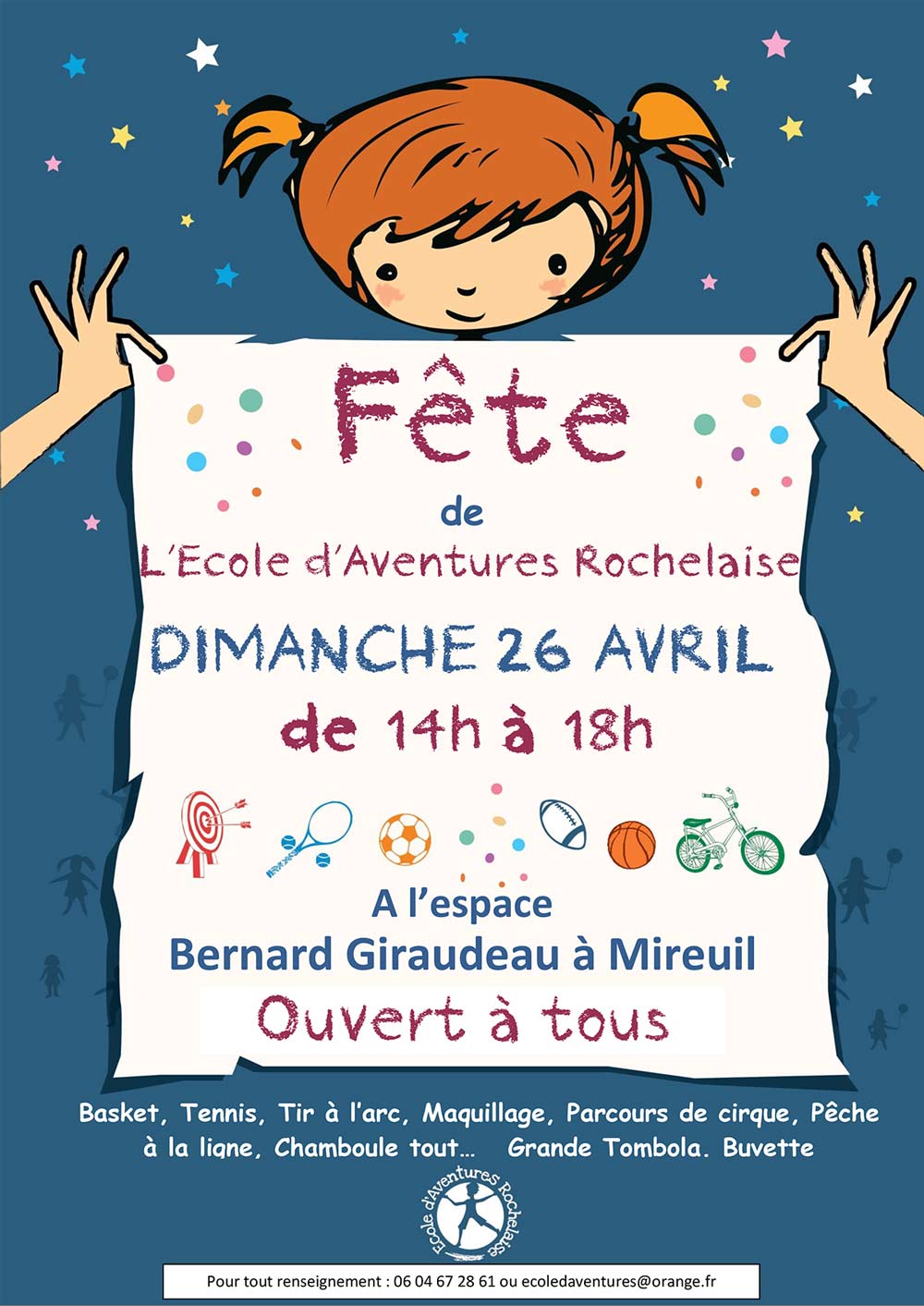 Cette grande fête démontre l’investissement des parents de l’association, car tous les stands que nous mettons en place, sont gérés par les familles. L’affiche de pub est aussi réalisée par un parent bénévole.